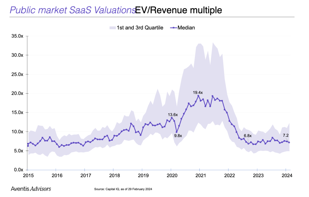 Distributions are at record low for a non-recessionary period, because overpriced deals over the past four years can’t be off-loaded to public markets. After pricing SaaS deals at 20x revenue just three years ago, you have a stupid amount of growth required to reach the same valuation at 7.2x revenue. Today’s valuation multiples aren’t low either, they are average for fundamental analysis based upon discounted cash flows weighted for a reasonable cost of capital in our current rate environment, unlikely to change and more realistic than the free money of the past decade.